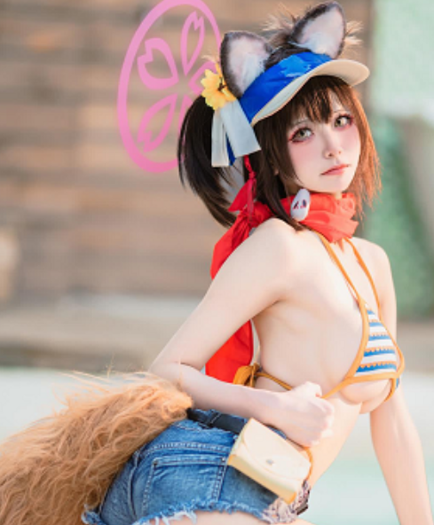 九柒喵这套32期合集简直是老司机硬盘里的宝藏!从碧蓝档案的**妃咲**到FGO的**酒吞童子**,她完美拿捏每个角色的精髓。尤其兔女郎那期,黑丝裹紧的纤细脚踝配上红色高跟鞋,镜头扫过小脚时连趾缝都透着诱惑,这谁顶得住?还有圣路易斯那身开高衩泳装,水流顺肩颈滑进深V的画面,比杨紫新剧的营销热搜还让人心痒。