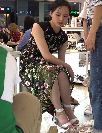 5、花裙子精致美女试鞋视频.MP4