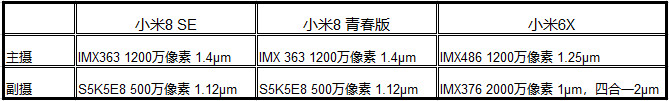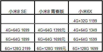 小米6X —- 小米8 SE —- 小米8 青春版