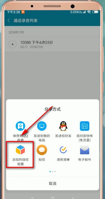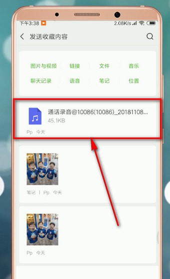 4.找到【我的收藏】就能看到电话录音文件了,将其发送给好友即可。