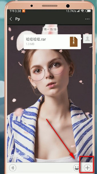 3.接着打开微信,选择需要发送的好友,点击下方+号图标,