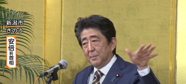 日本前首相安倍晋三在新潟市发表讲话 视频截图