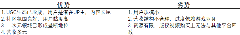B站优劣势分析
