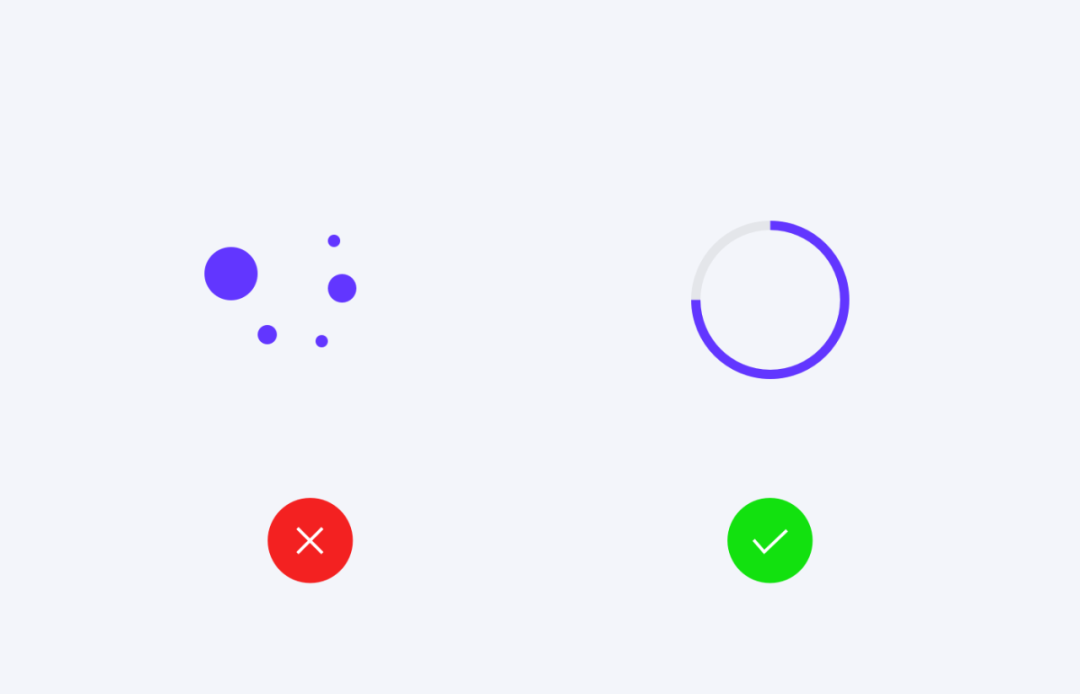 封闭原则在加载指示器中运用较多,这样便于用户理解。左侧加载过于分散,无法让用户联想到加载,因此右侧思路与封闭原则有着一致思路。