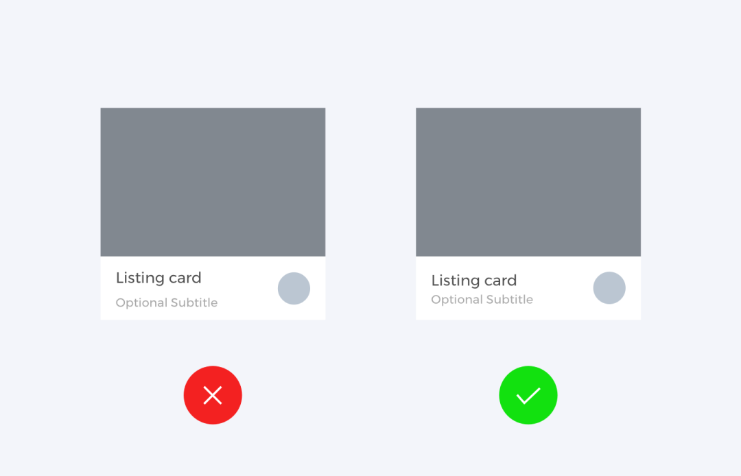 左侧卡片中,文字排版有点分散,导致信息理解会误判。右侧卡片中文字排版信息集中,便于表达同一个主题。