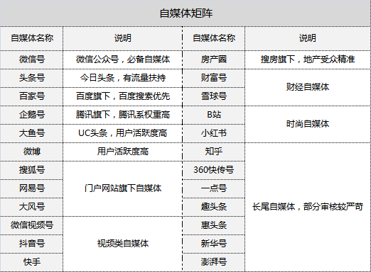 1)媒体选择:搭建自媒体矩阵