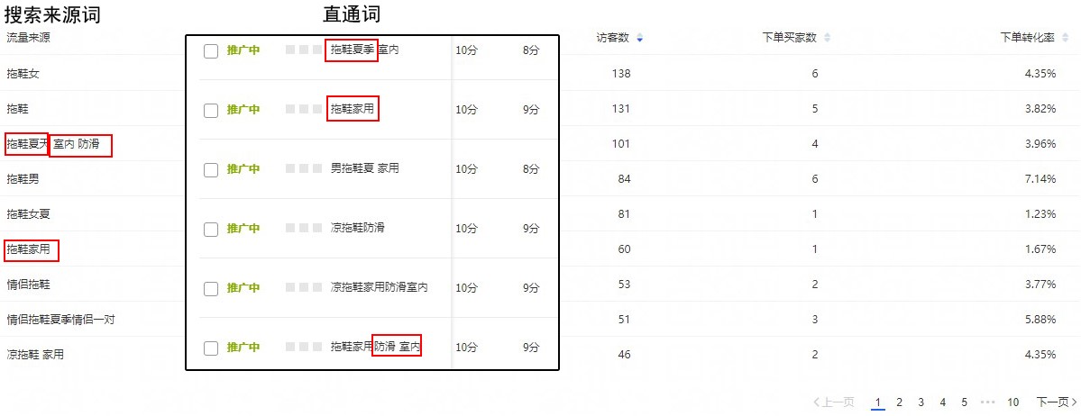 直通车词和淘宝搜索来源词对比(搜索来源词都是在标题中出现的)