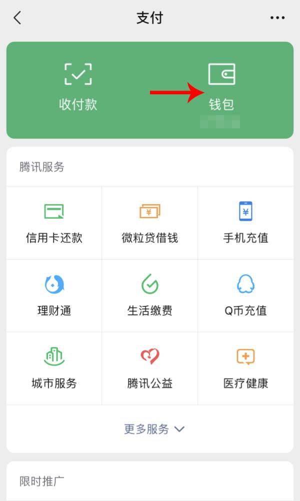 第二步:进入支付菜单主界面后,选择“钱包”功能。