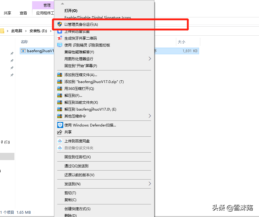 1,使用暴风激活工具前应右键——管理员身份运行。