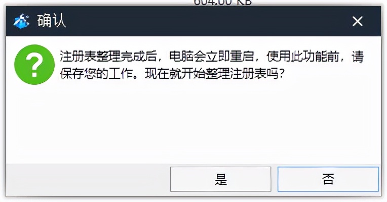 注册表整理完成后,电脑会立即重启,使用此功能前,请保存您的工作。现在就开始整理注册表吗?如果有没保存的工作要保存会重启的。重启完成后感觉电脑快了一点。