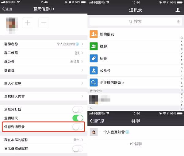 按钮变为绿色,表示开启消息免打扰,即屏蔽群聊。