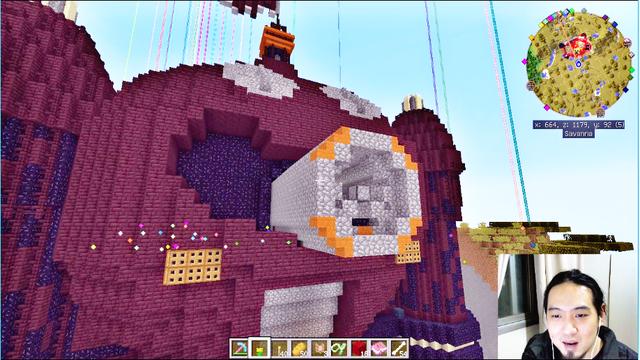 7、最前方的中间的那个TNT在第2层上其他那些在第一层,记住那个悬空的铁块下不要放TNT,红石中继器前方放铁块,红石前放玻璃砖。