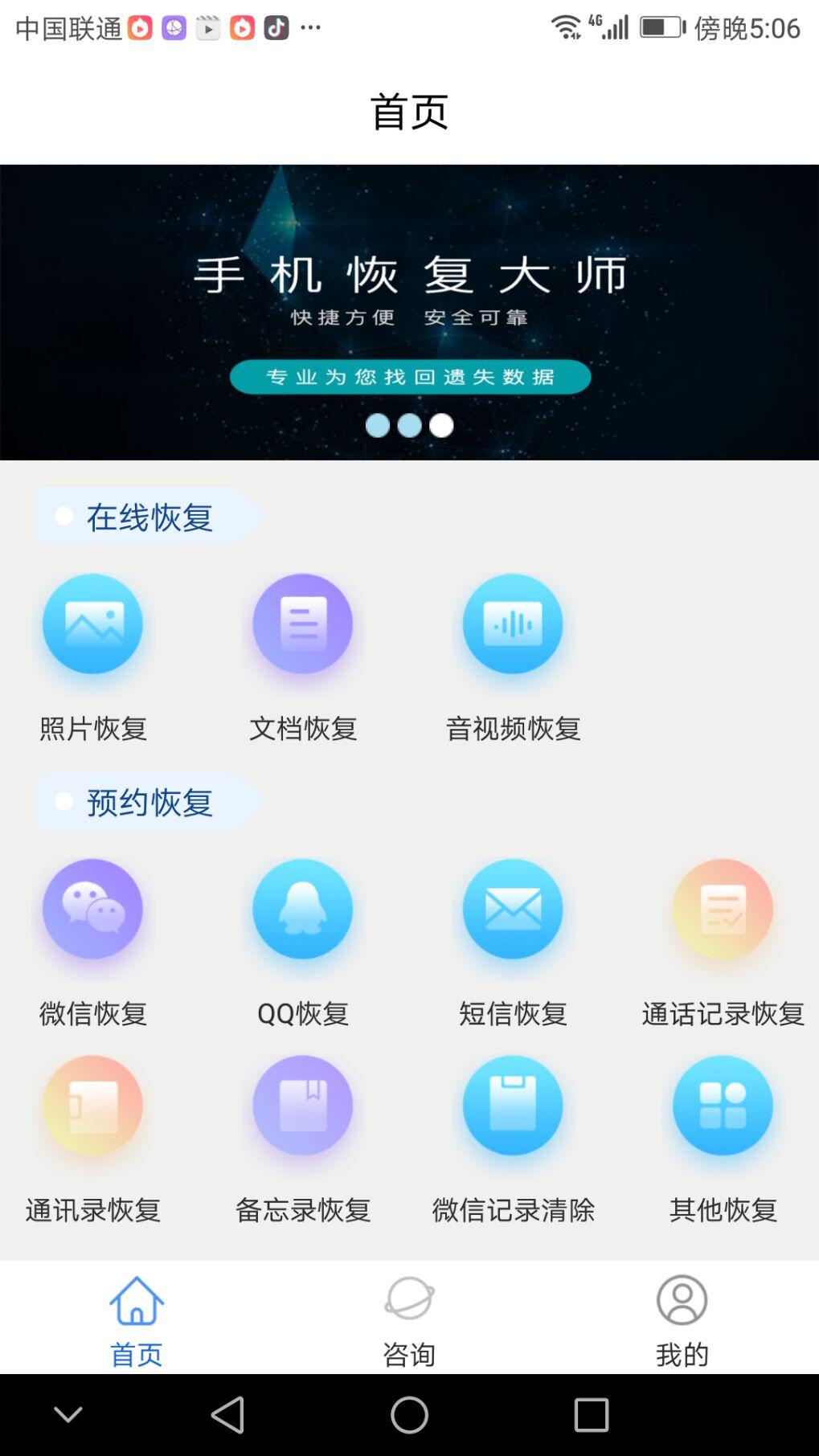 3、上传完成后,然后在新手机上登陆微信。然后再次进入“聊天记录备份和恢复”窗口中,点击“开始恢复”按钮,以便将保存在远程服务器端的聊天记录恢复到本地聊天缓存区中。