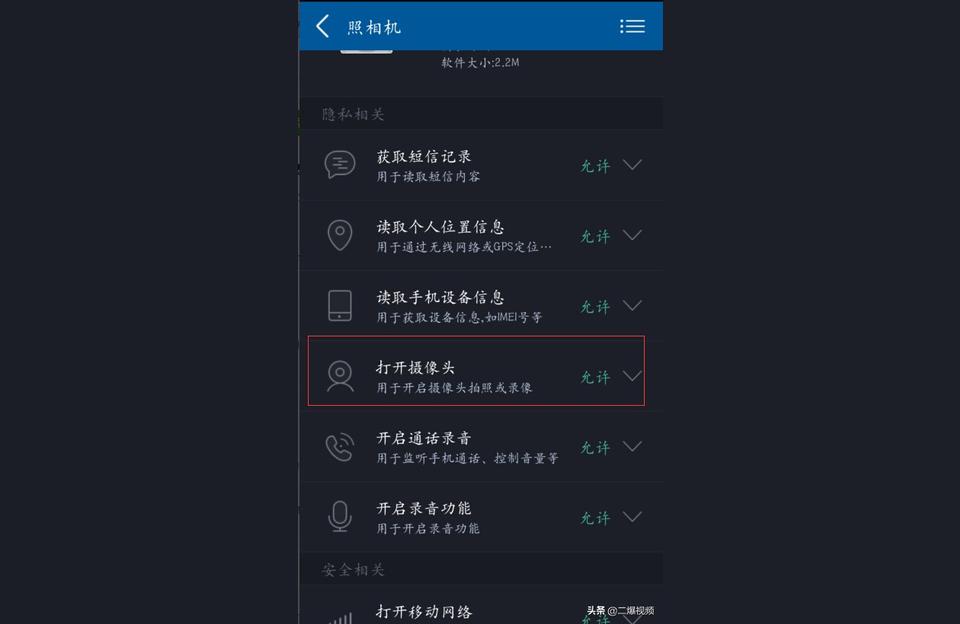 1.进入手机设置——安全——应用权限——权限/应用