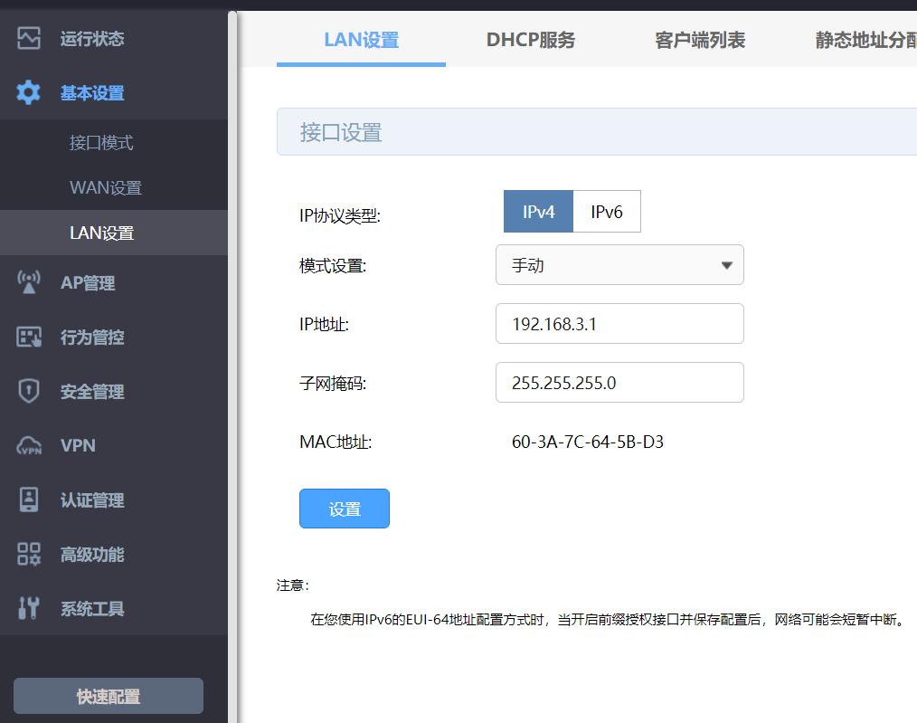 01登录路由器,给需要当交换机使用的路由器供电(暂不要连接到前端网络),操作电脑连接到LAN口,在浏览器中输入192.168.1.1并进入管理界面。