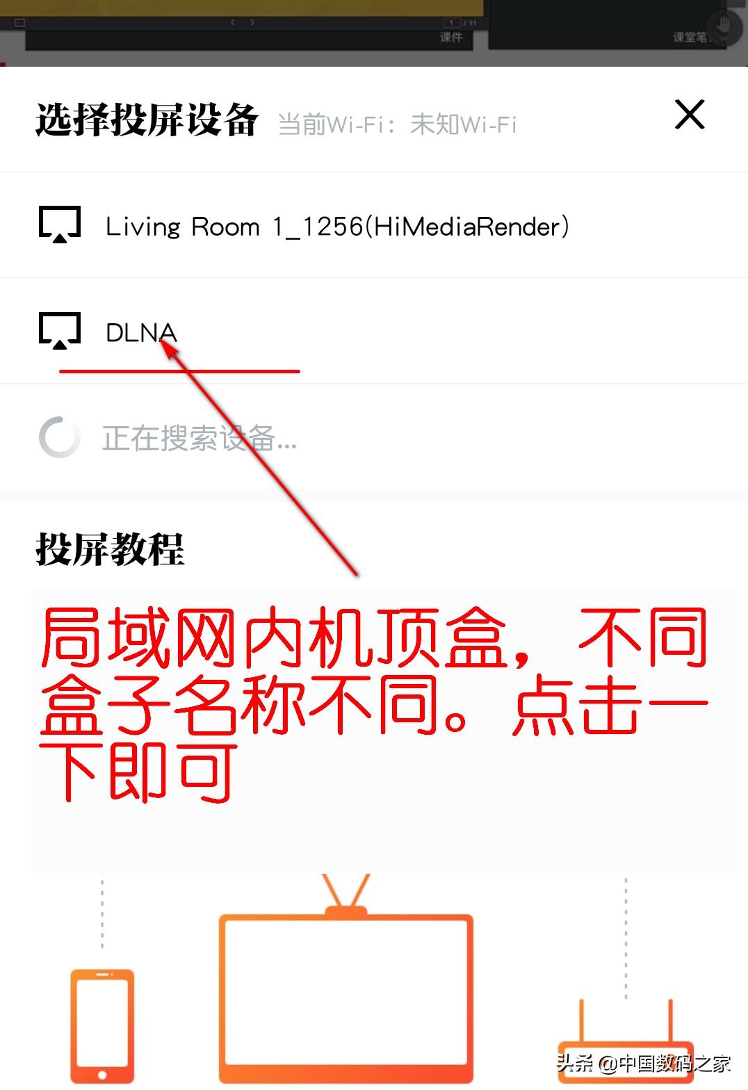 投屏之前,需要把手机和电视机(或者电视盒子)连接在同一个wifi中。